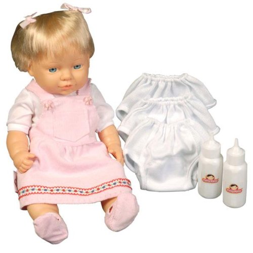 The Potty Patty Doll was designed for the Potty Training in One Day method, but is a great tool potty training in general and is also the perfect doll for girls! The Potty Patty Doll includes the following items: 1) Potty Patty- The Potty Training Girl Doll that is Specially Designed to Potty Train. She is an anatomically correct drink and wet-on-demand doll. She can drink water and hold it until you want her to use the potty. She is 16 tall and is dressed in a 2 piece outfit, so t